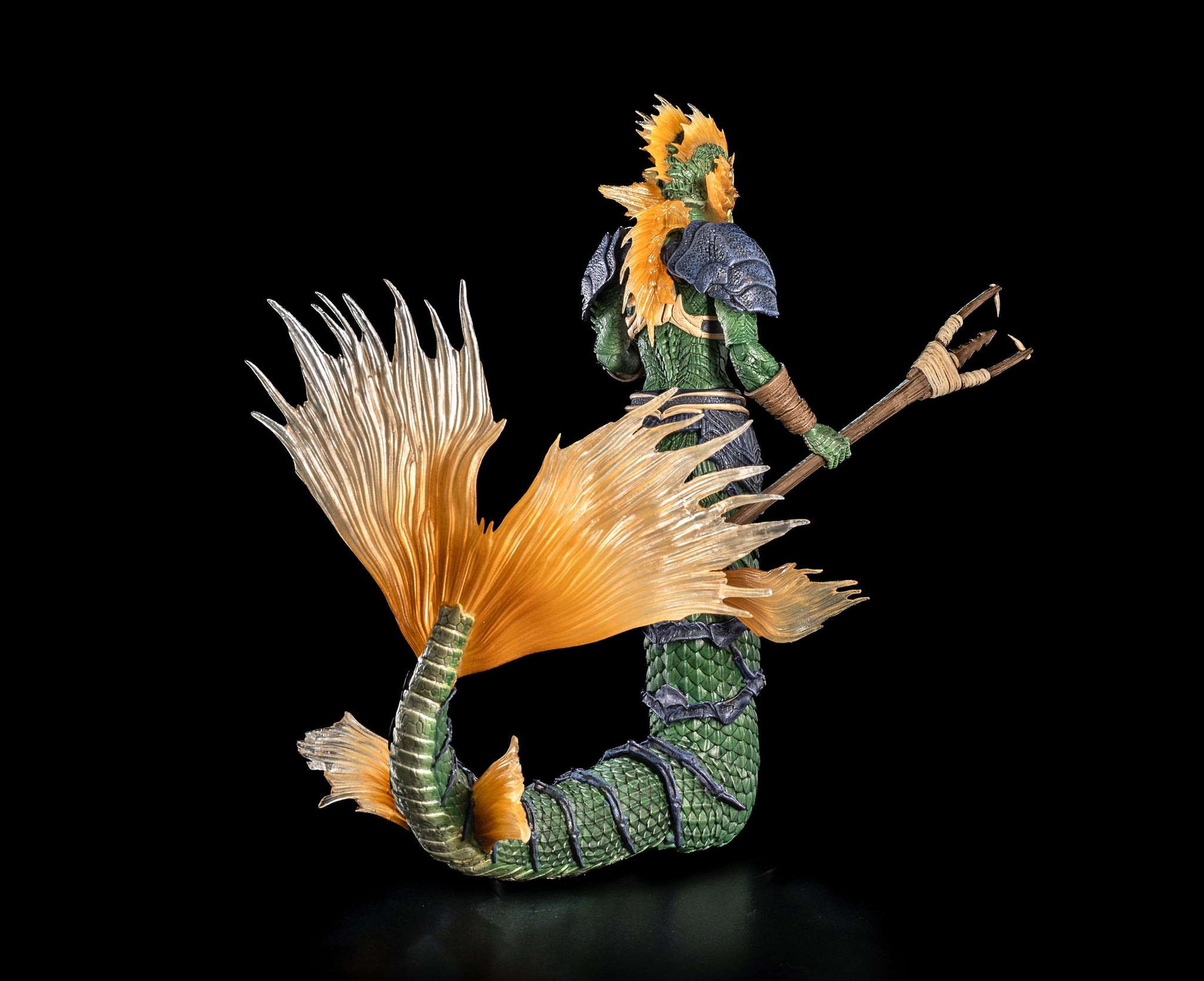 Sireyn Opalscale is a deluxe figure that comes with 1 heads (brand new - with 2 different face plates including her battle mask), plus fishing spear, rope with hooks, knife, dark spear, lantern, and extra hands. She also comes with parts to display her in multiple ways - including with a set of legs for her bipedal form, or with the large fish-like tail! The fish tail includes a "curved" piece so she can be displayed as shown in the images her, or you can swap that bent piece for the extra straight segments to have her tail fully vertical.