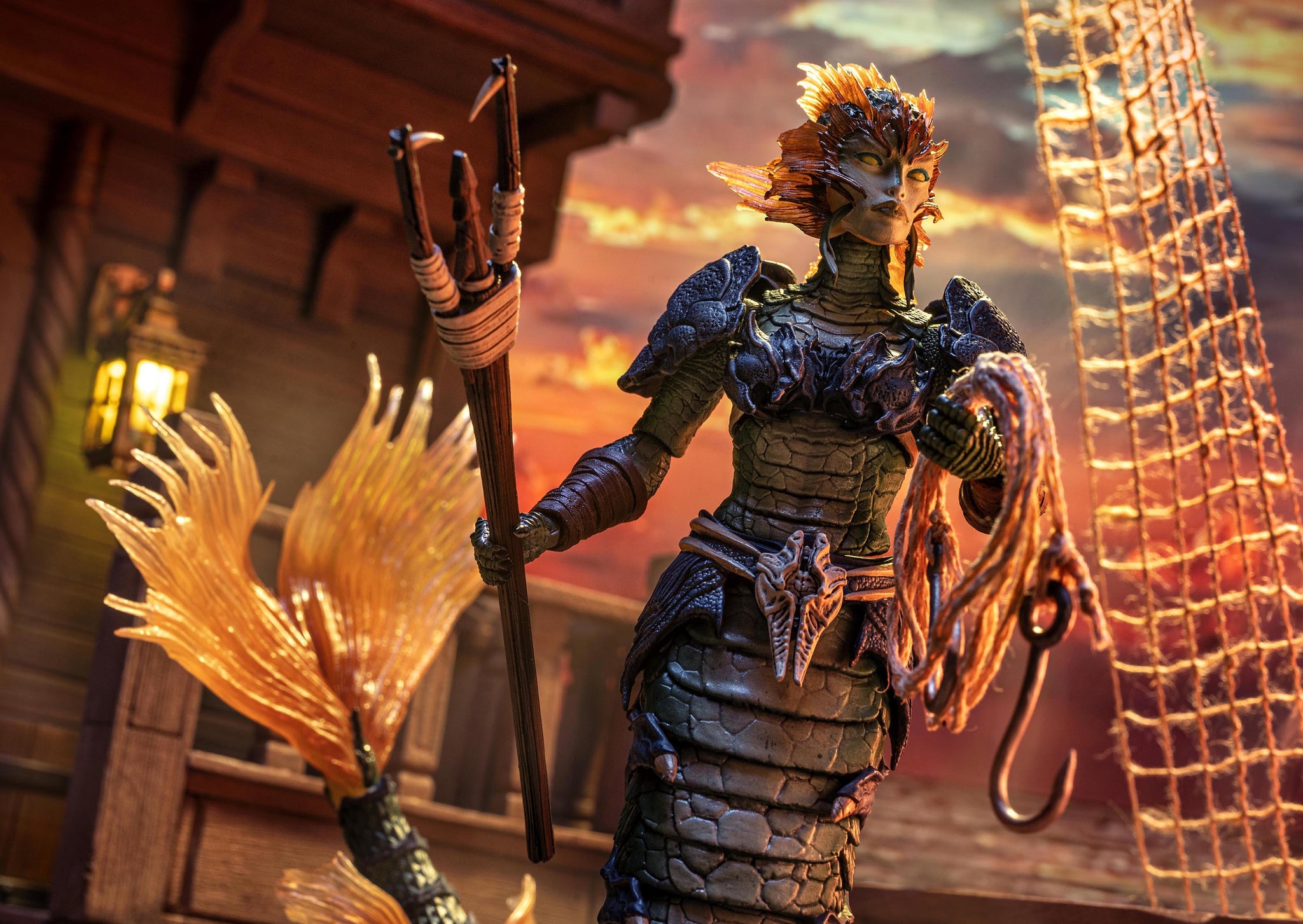 The Chief Engineer of the Ocean’s Lure, Sireyn Opalscale’s job is to keep the ship in top condition at all times. As a member of the Merfolk species, she is uniquely equipped for this role, being able to transform her body to exist either below the waves or above them. This allows her to inspect every inch of the Ocean’s Lure to ensure it is ready for its next voyage. Unwaveringly loyal to the Fishers Guild, Sireyn Opalscale does her duty and welcomes the guests from New Mythoss aboard, but she makes no secret of her reservations on the matter or her feelings that the Guild is entering dangerous waters by aligning themselves with these strangers from a strange land.